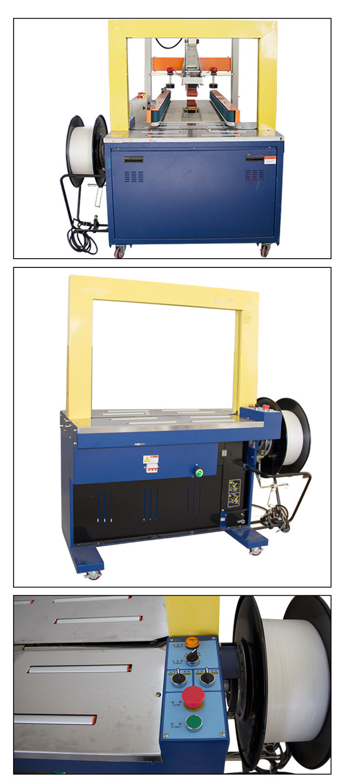 打包机是以聚乙烯塑料带为捆扎材料,主要用于商业、邮政、铁路、银行、食品、医药、书刊发行等行业的纸箱、纸包件、柳编箱、布包件的包装捆扎。