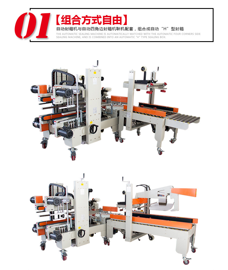 左右驱动封箱机两侧皮带驱动,采用即贴胶带封口,上下封箱,快速,平稳,且封箱效果平整、规范、美观 可根据纸箱规格,手工调节宽度与高度,简单,快捷,方便 可替代人工,提高高达30%的生产效率,节省5-10%耗材,是企业节省成本,提高生产效率,实现包装标准化的最好选择。